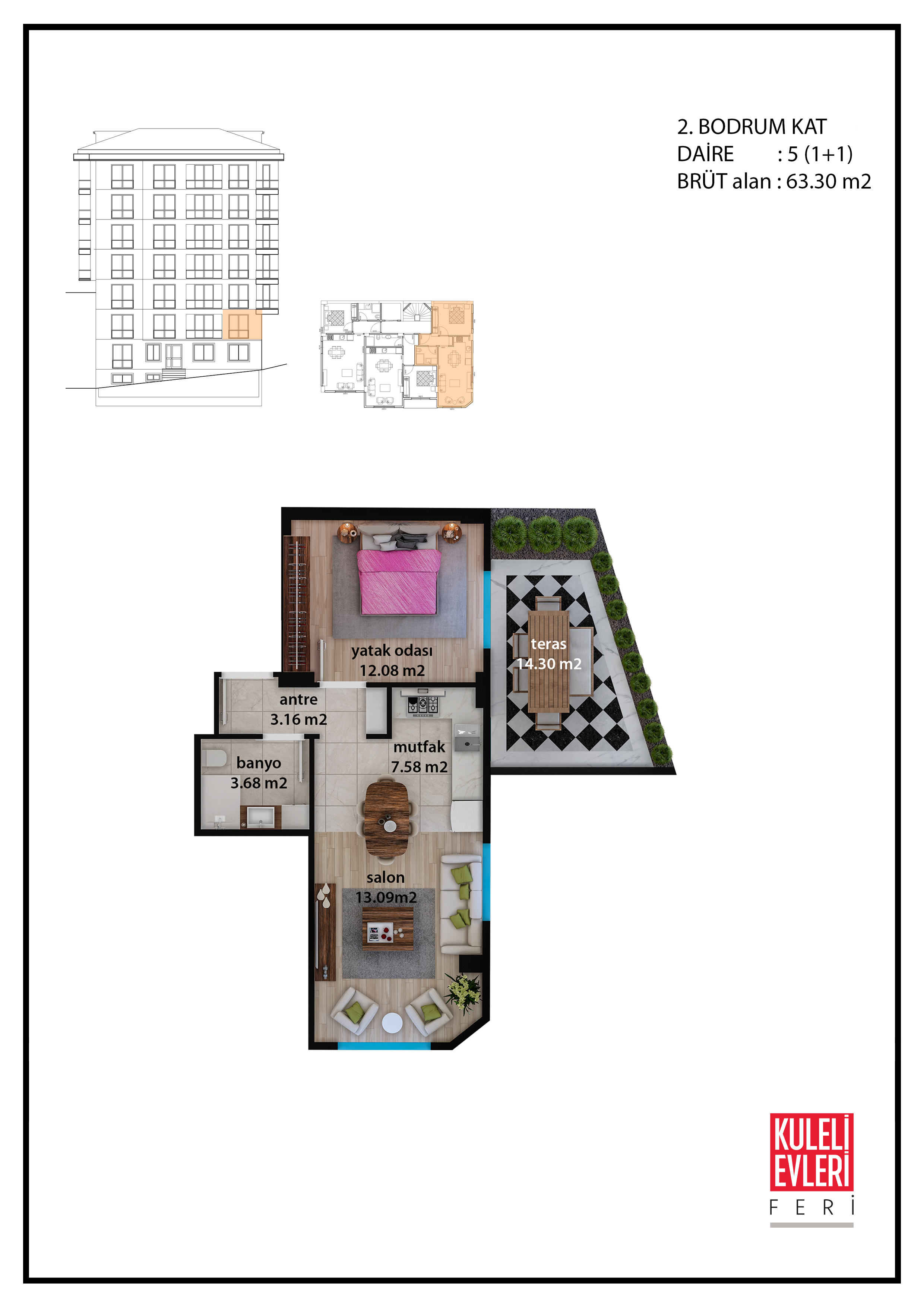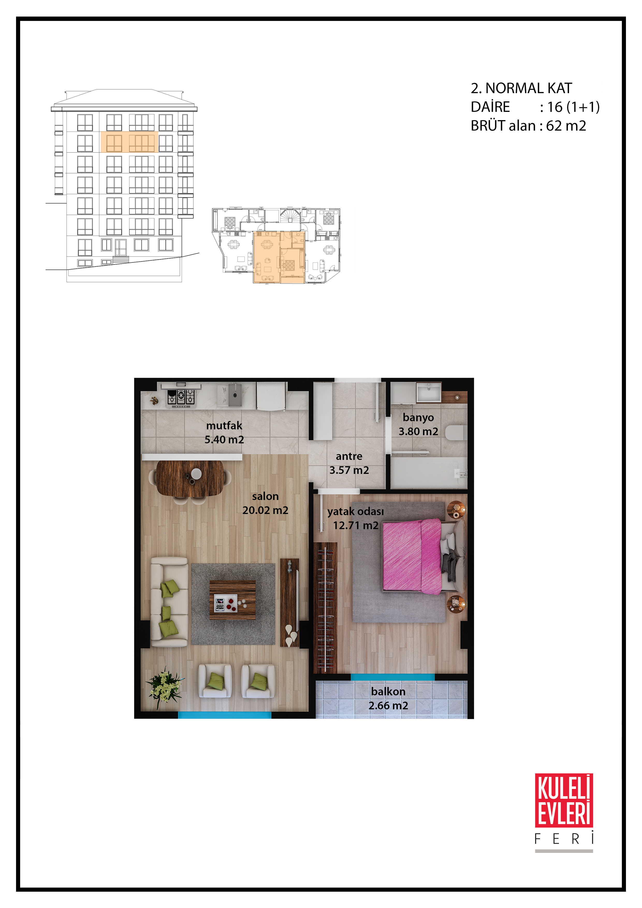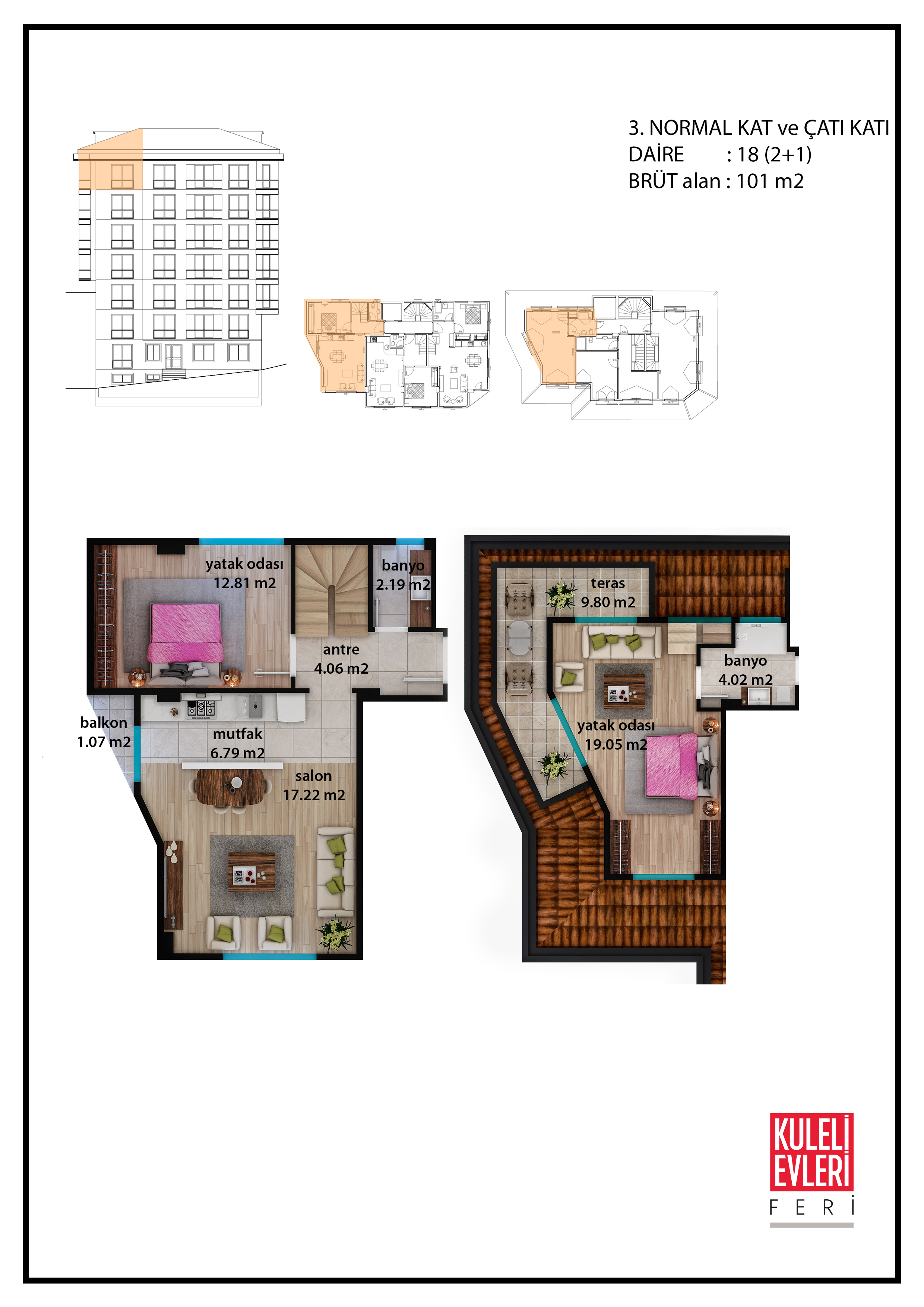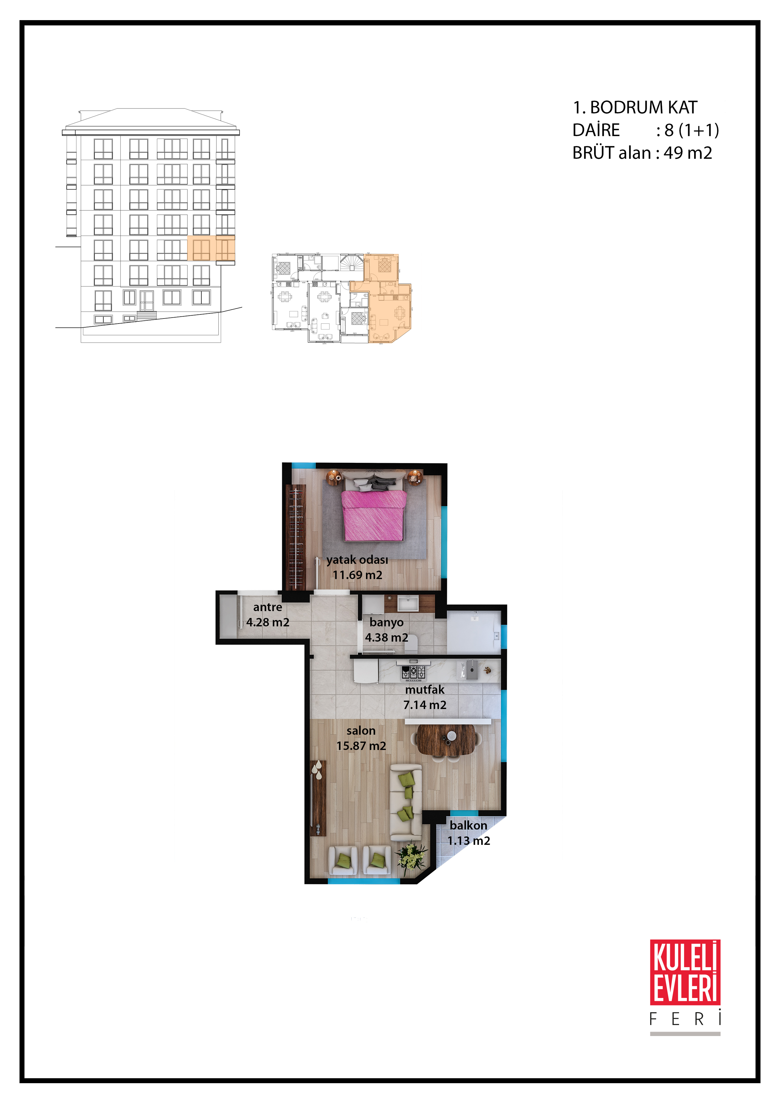 Evleri’nin butik projesi Kuleli Evleri Feri 49m2 ile 115m2 aralığında 20 adet daireden