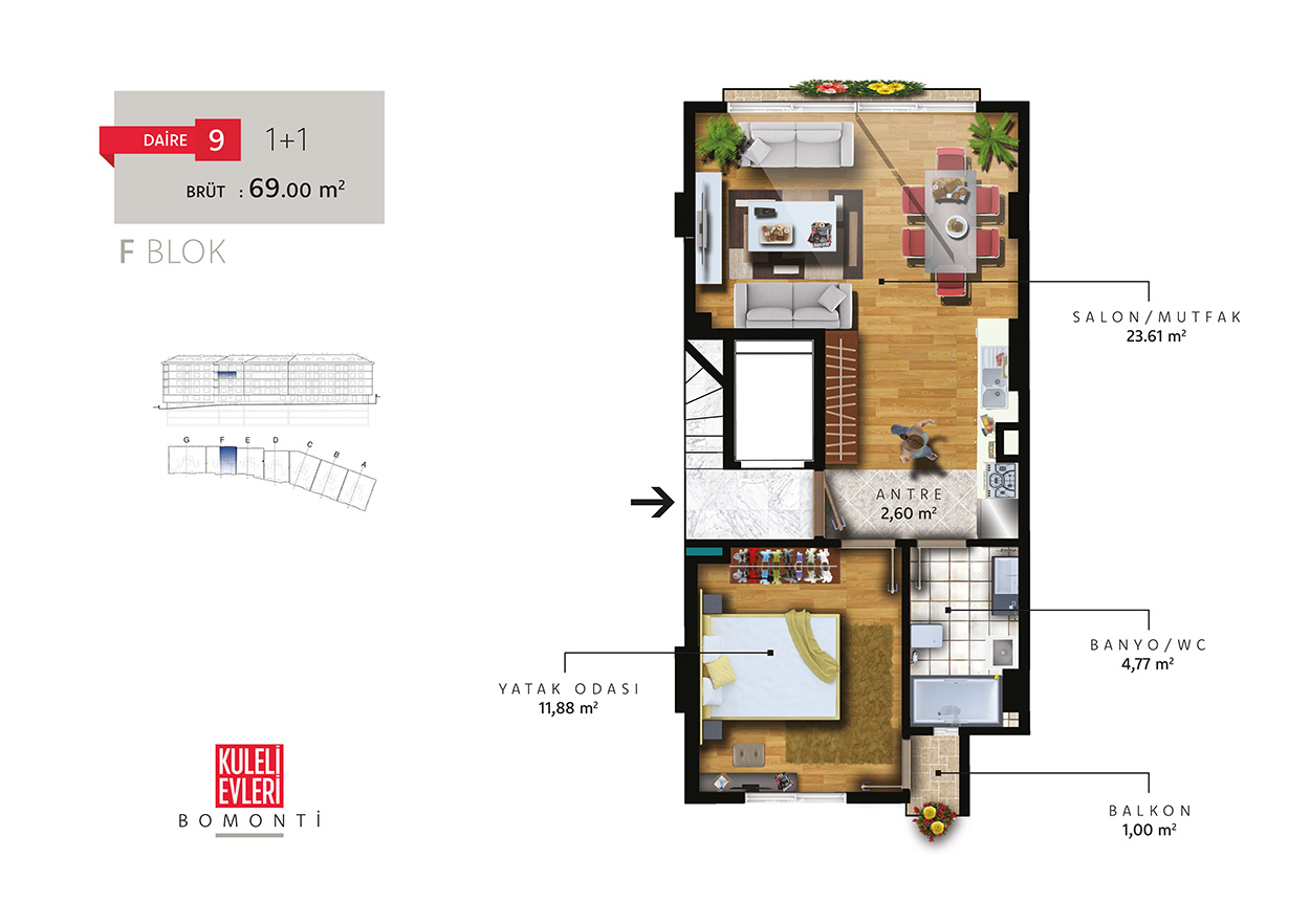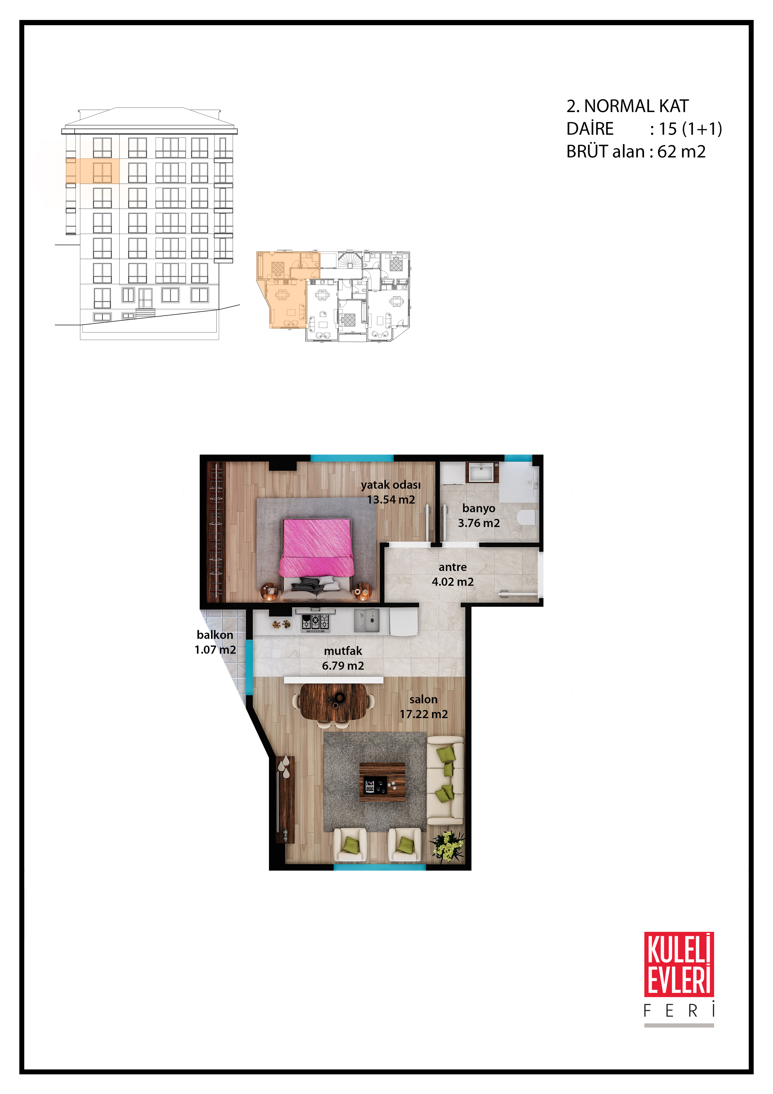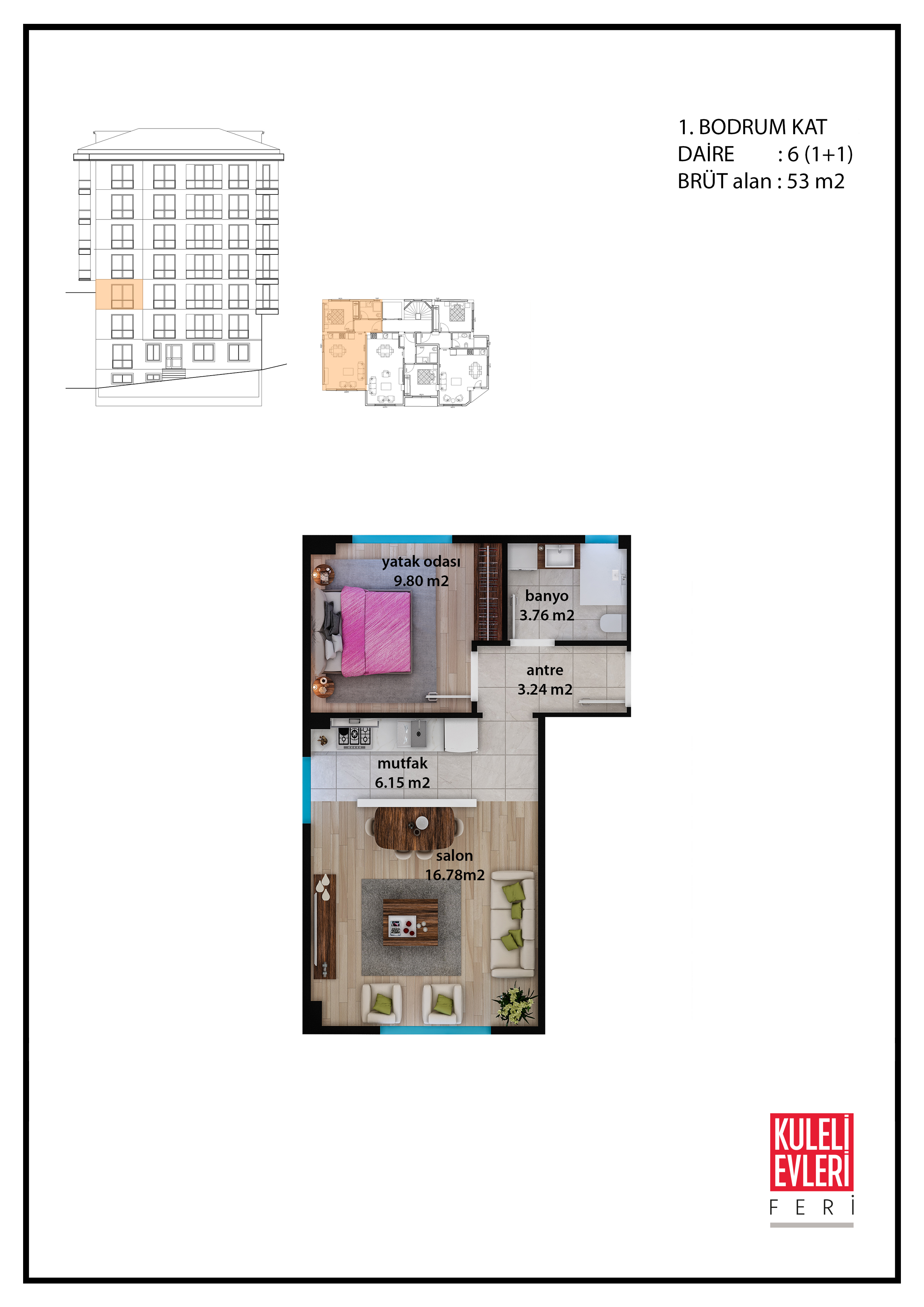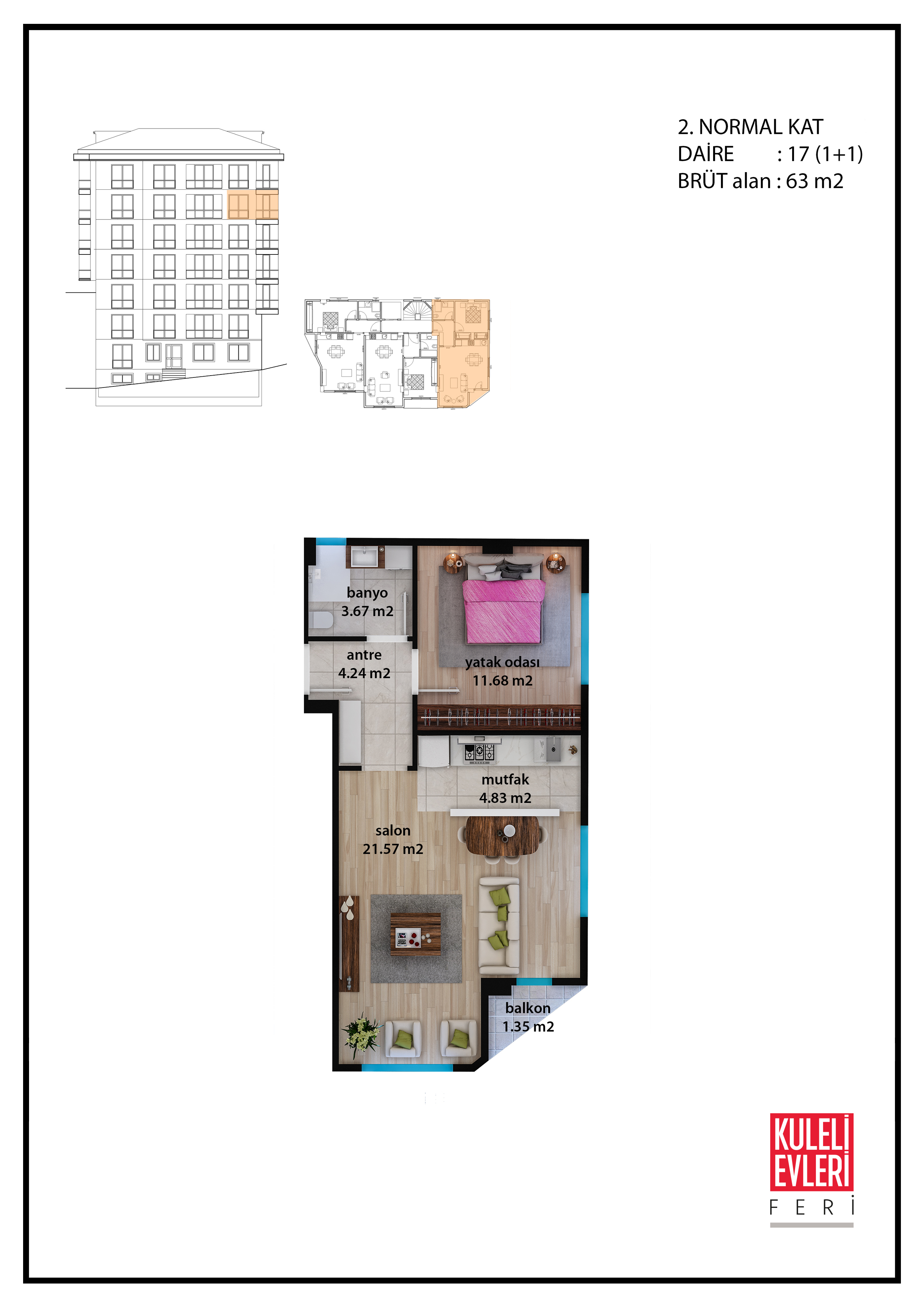 Evleri’nin butik projesi Kuleli Evleri Feri 49m2 ile 115m2 aralığında 20 adet daireden