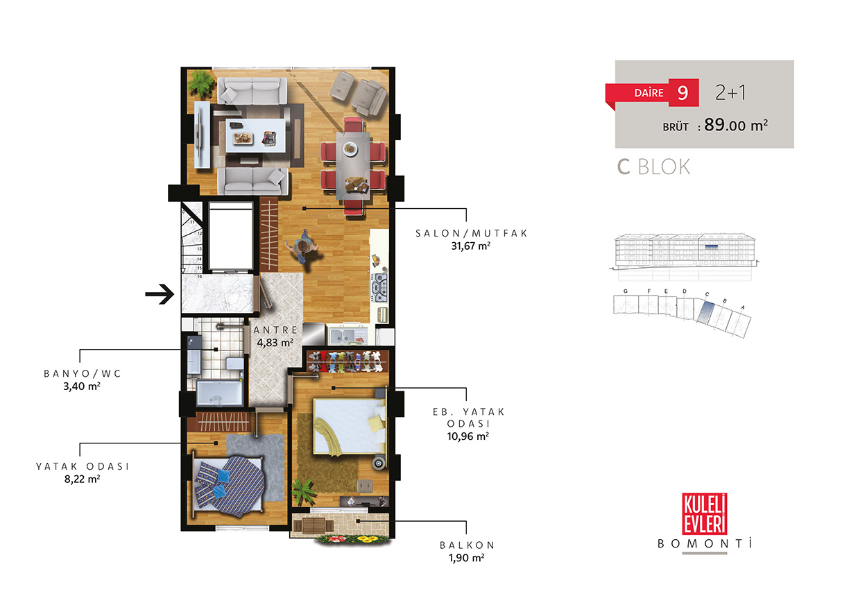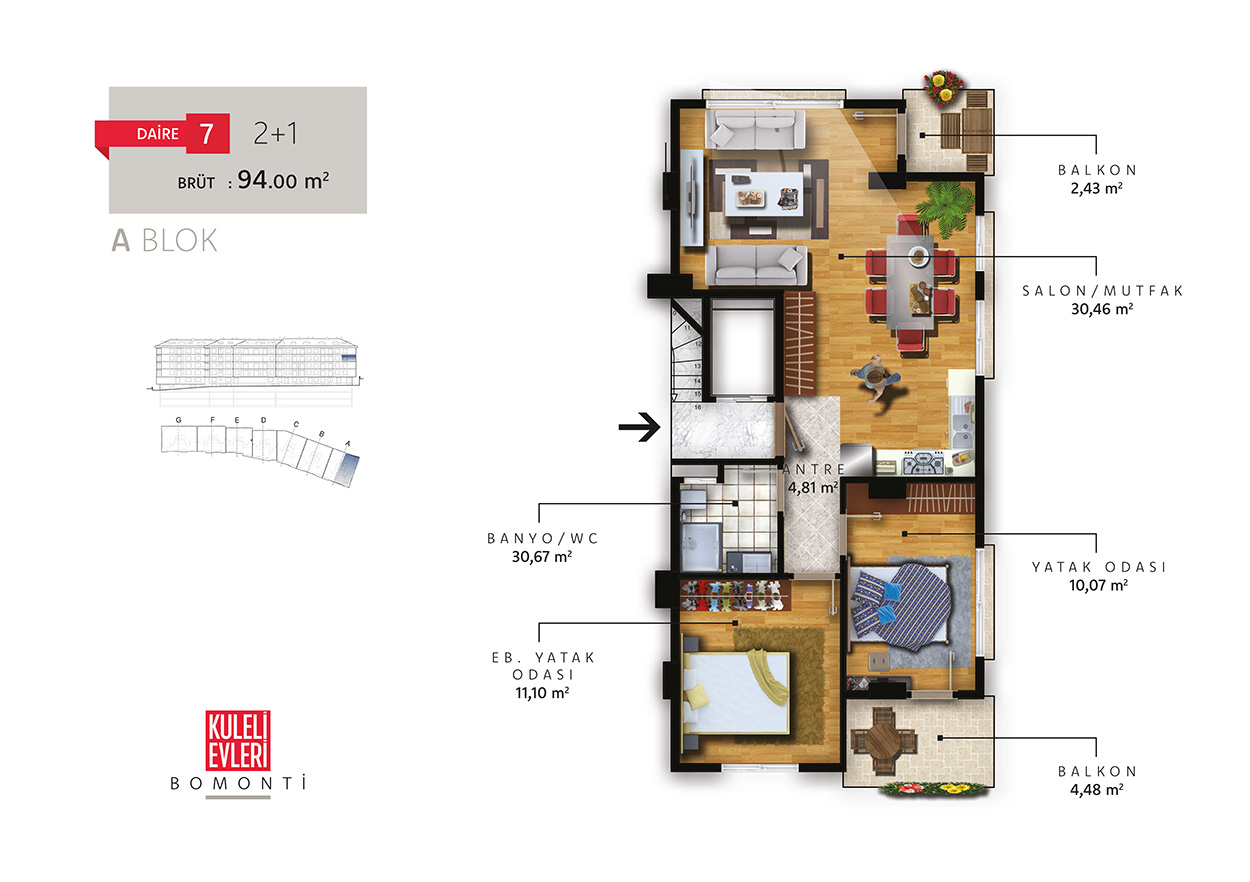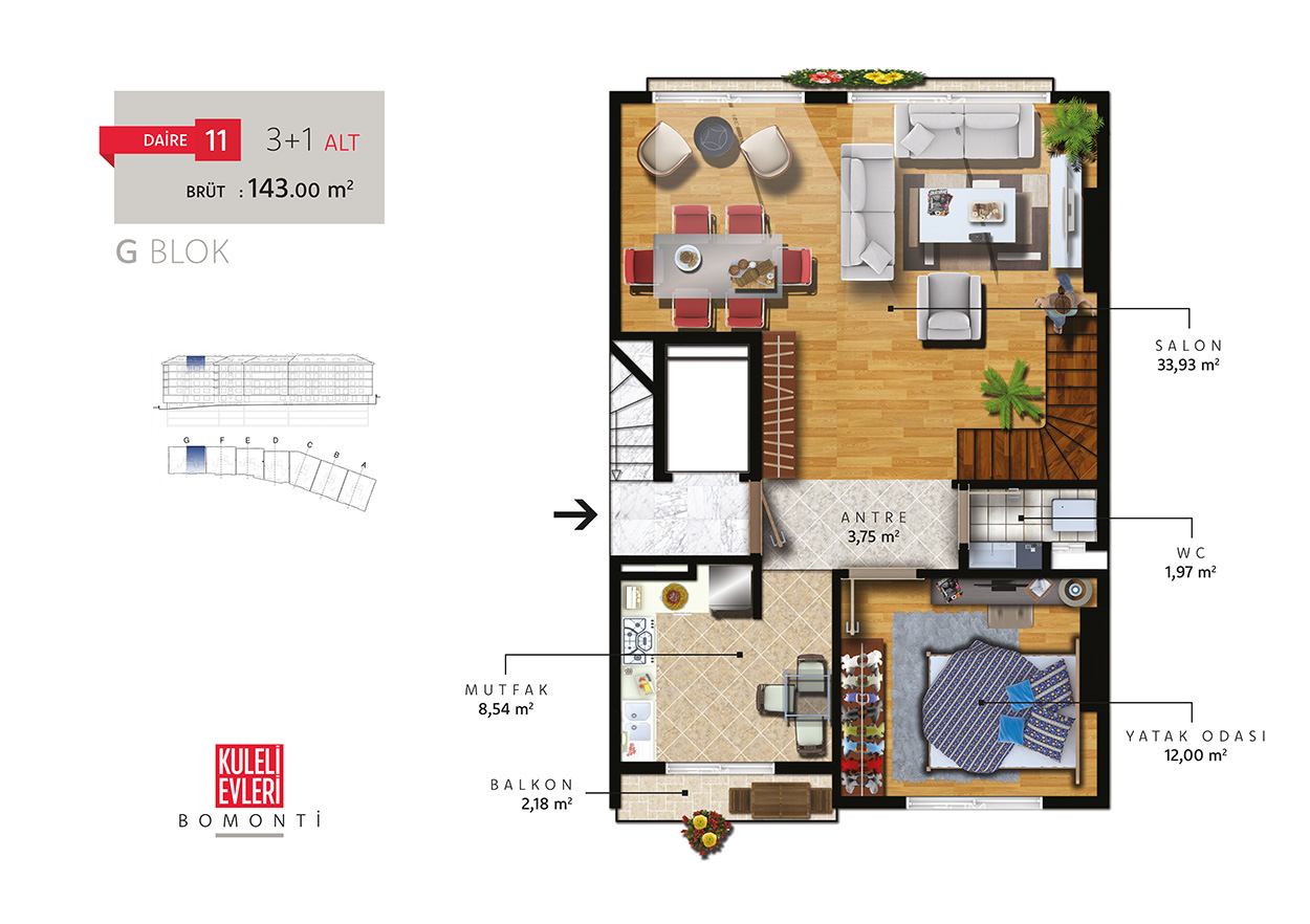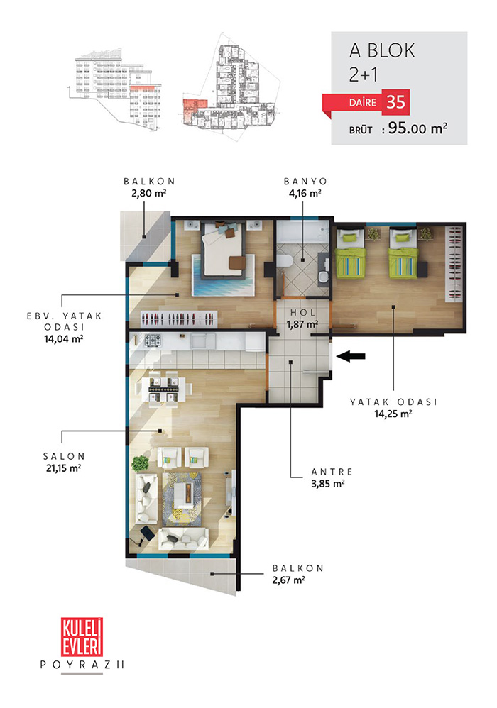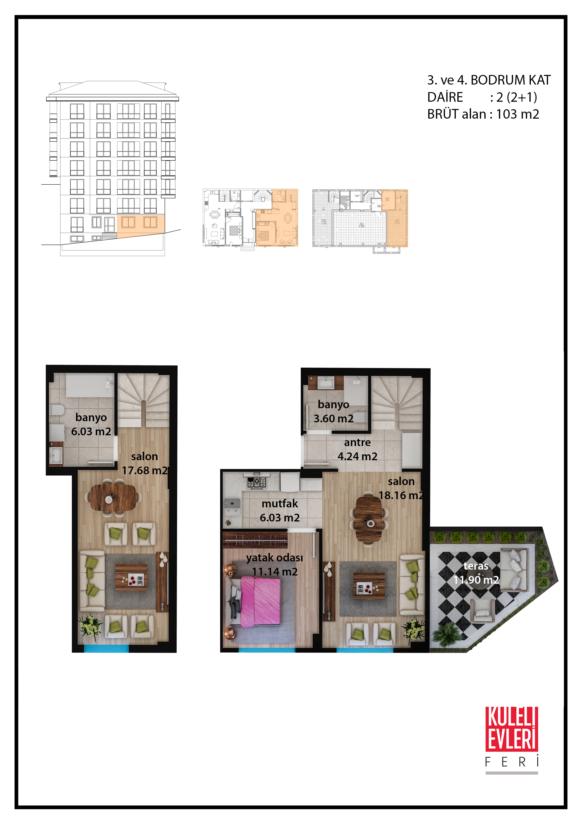 Evleri’nin butik projesi Kuleli Evleri Feri 49m2 ile 115m2 aralığında 20 adet daireden